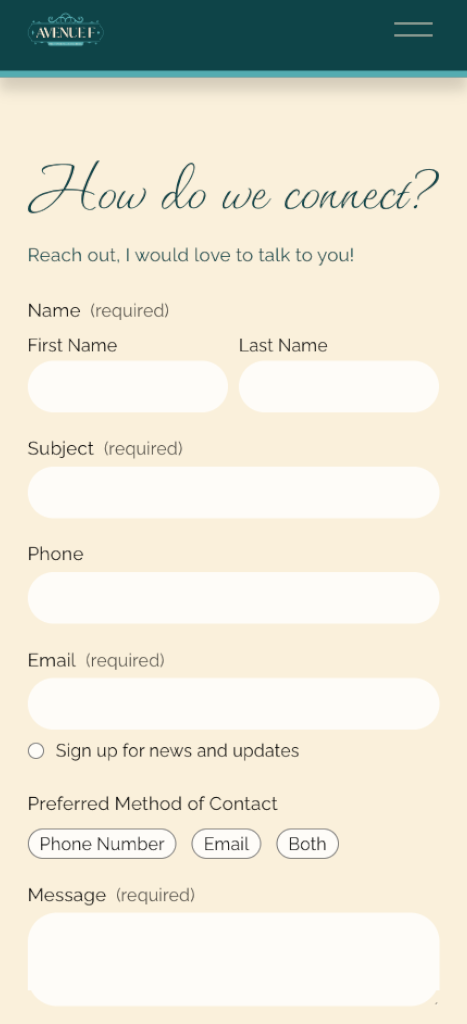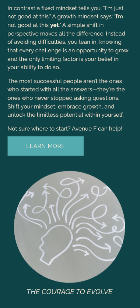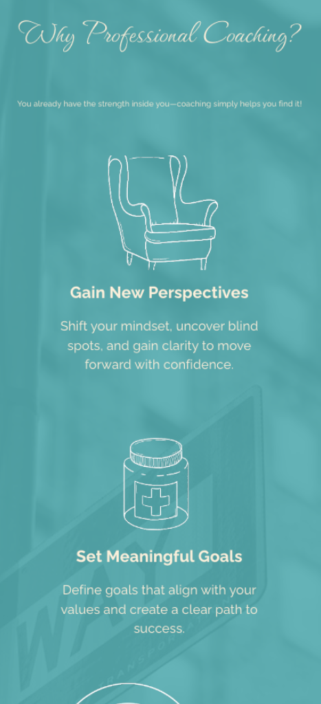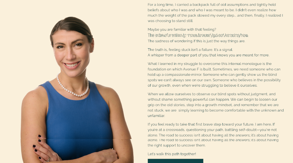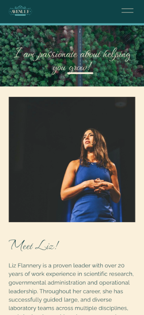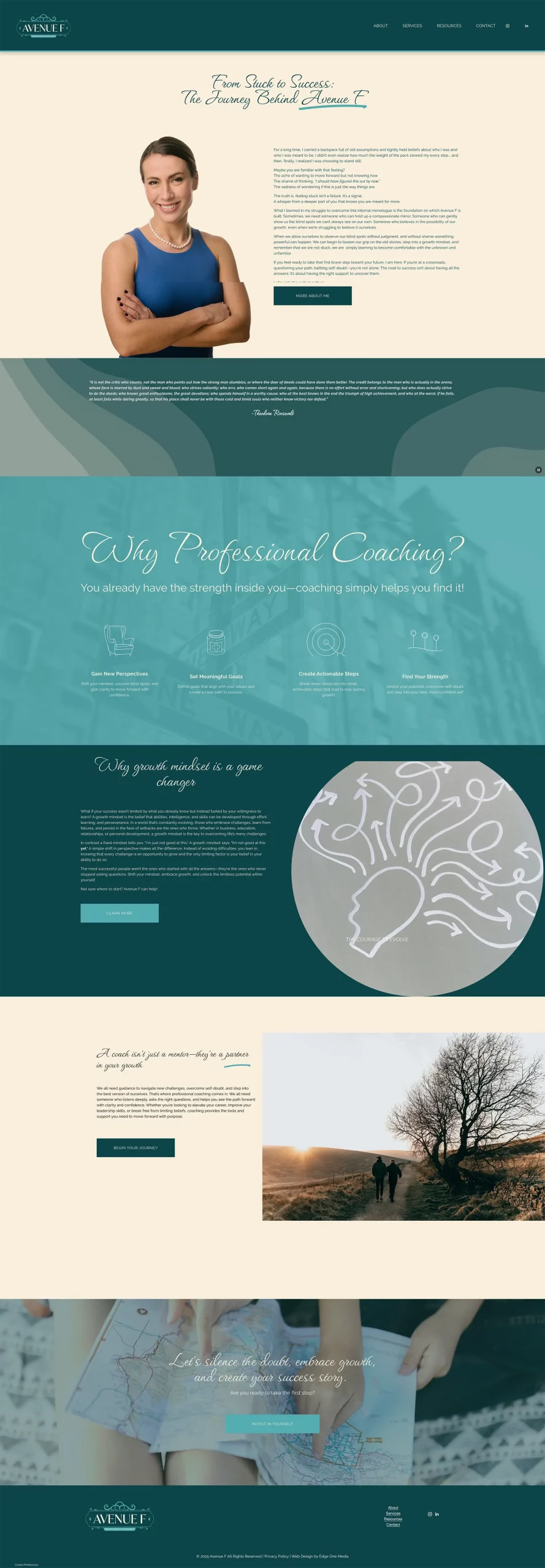 Avenue-F website was designed to provide a clear, intuitive experience for visitors exploring coaching services and resources. Navigation was structured to make it easy to learn about offerings, access guidance, and take the next step with confidence. Using the brand’s calming blue/teal palette and pathway-inspired design elements, the site reflects Avenue-F’s mission of helping clients find direction while maintaining a steady, approachable, and supportive online presence.