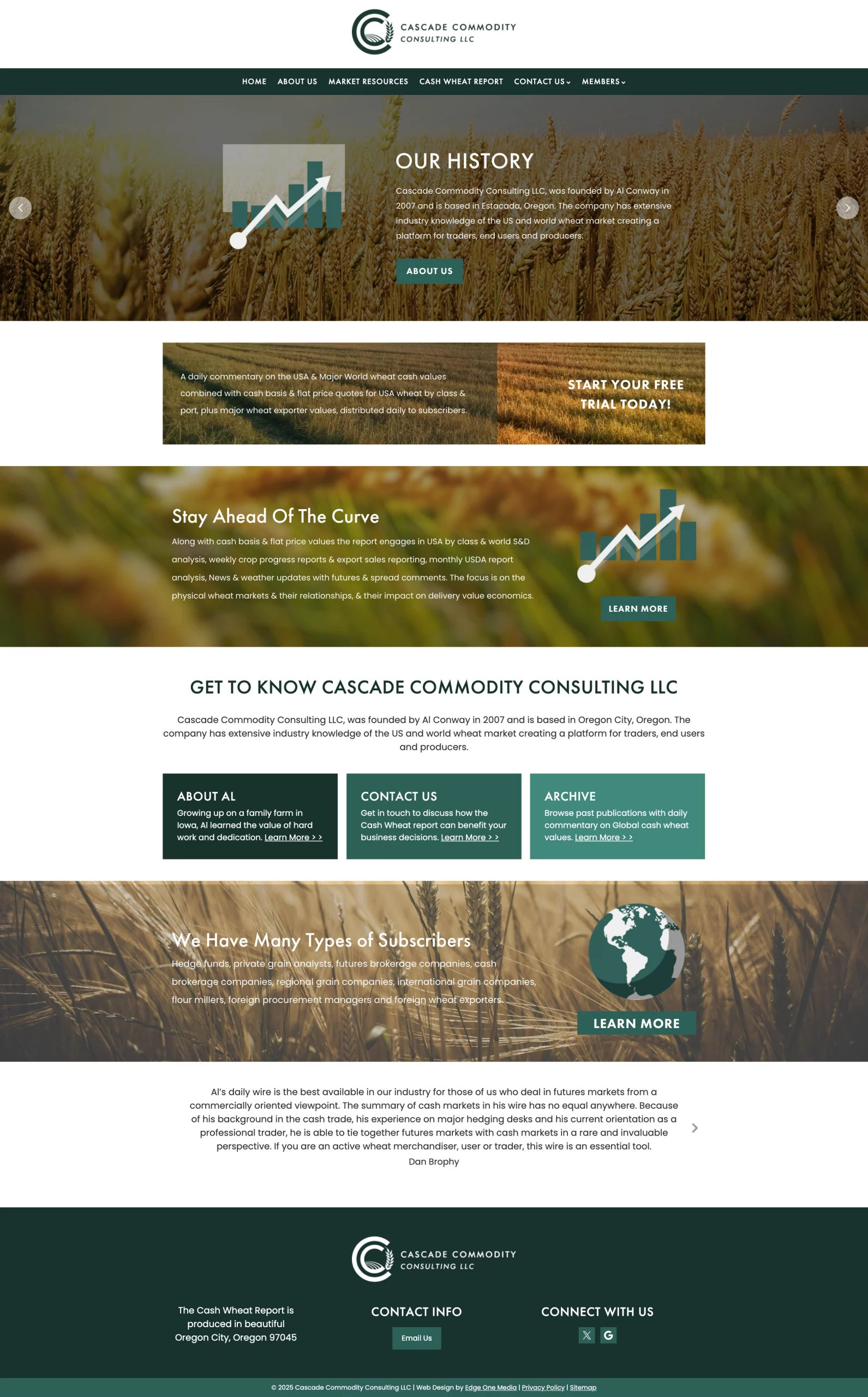 Edge One Media designed Cascade Commodity Consulting’s website around 10 years ago but since then added functionality to their site to provide their customers with a valuable experience.
