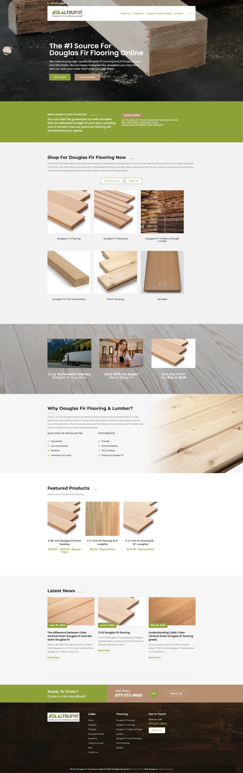 Altrufir Doug Fir Flooring & Lumber needed a fresh look and revised shopping process for their webstore. Working within their budget, we customized the site through a template that was chosen among a curated list of templates that fit their industry and attributes. We delivered a polished, user-friendly platform that effectively showcases their high-quality flooring products and elevates their online presence.