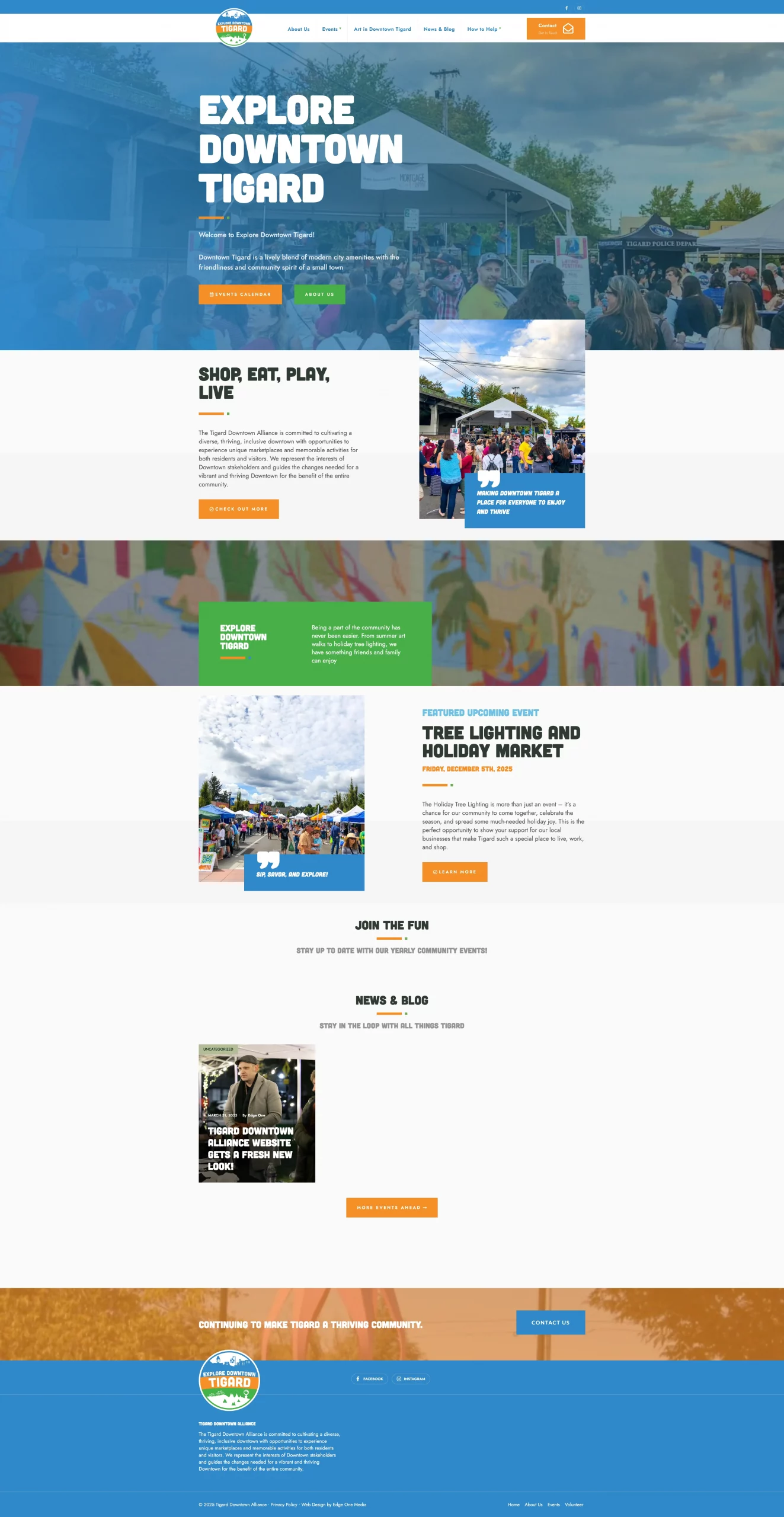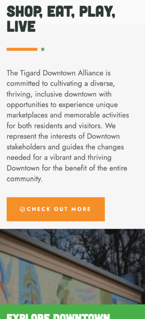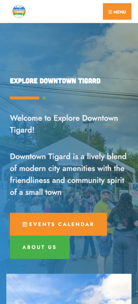 Explore Downtown Tigard plays a central role in supporting local businesses and creating community-focused events that bring families together throughout the Tigard area. Our redesign of their website focused on strengthening their brand identity and improving overall usability, ensuring visitors can easily discover upcoming events, explore programs, and stay connected with the organization’s work. The updated site provides a clearer structure, streamlined navigation, and a more engaging digital presence that reflects TDA’s commitment to fostering a vibrant downtown community.