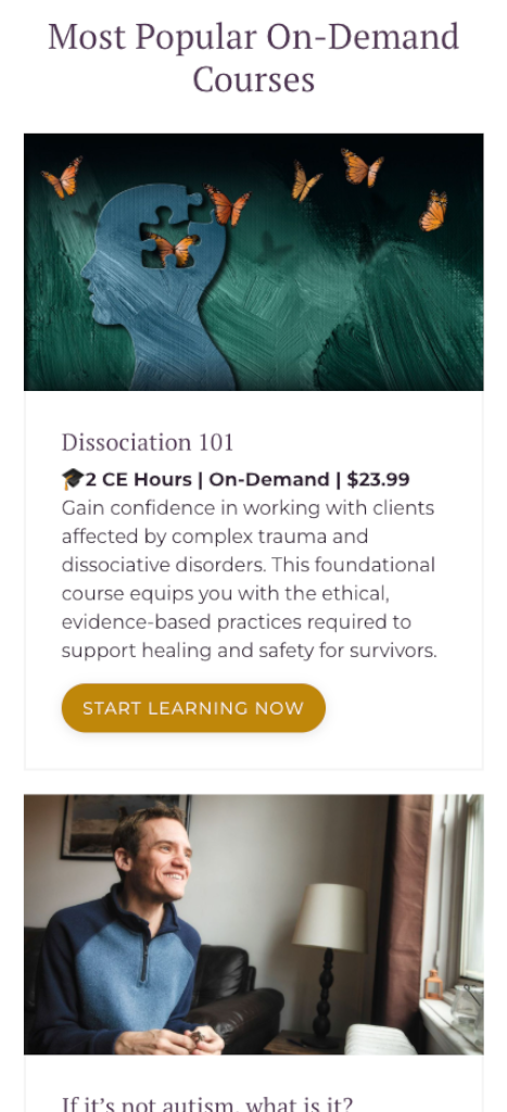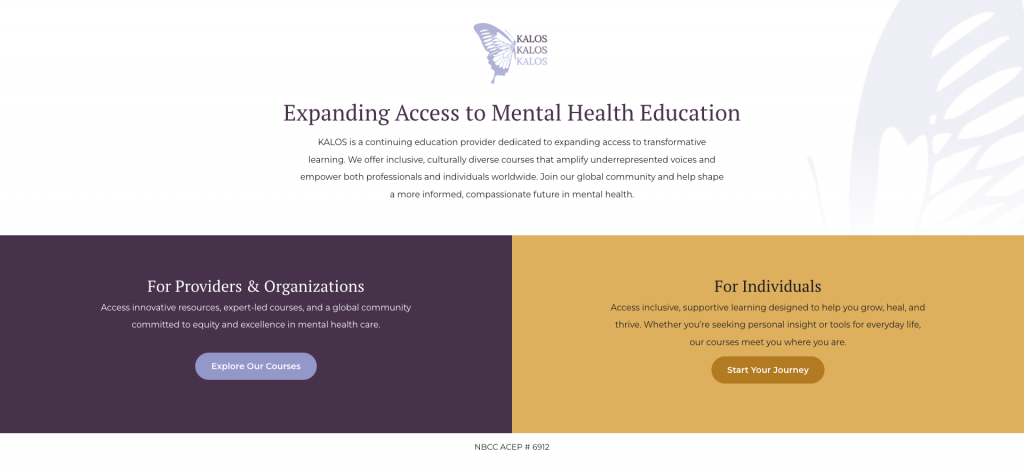 The refreshed layout highlights KALOS’s supportive, collaborative mission while integrating organized paths for course enrollment, therapist directories, and community engagement. The result is a website that feels welcoming, easy to explore, and purpose-built for connection and professional growth.