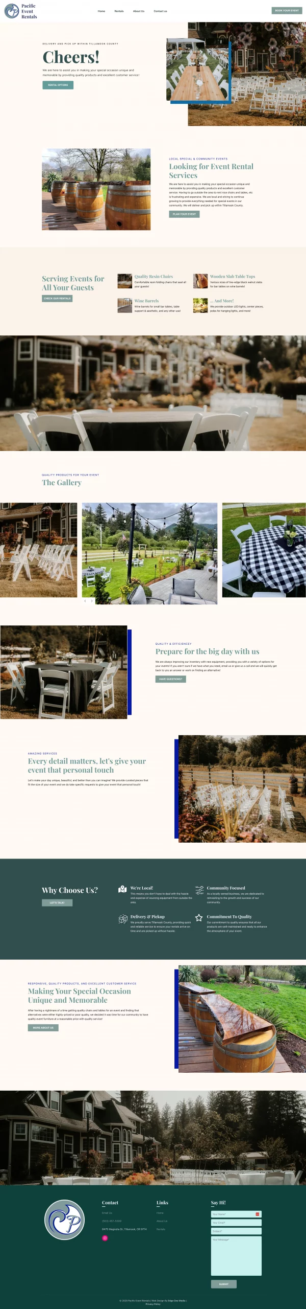 Pacific Event Rentals is a friendly community resource for Tillamook residents and visitors. We built a website highlighting its extensive range of services and enhancing its online presence. Pacific Event Rentals aimed to better connect with clients and streamline the event planning process.